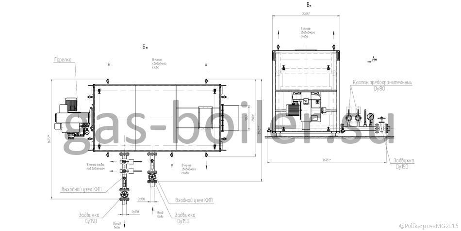 Котел поставляется максимальной монтажной готовности. Котельный блок устанавливается на ровную поверхность, подключается теплоноситель, горелка, настраивается автоматика, КИП и запорная арматура, сверху подводится газоход.